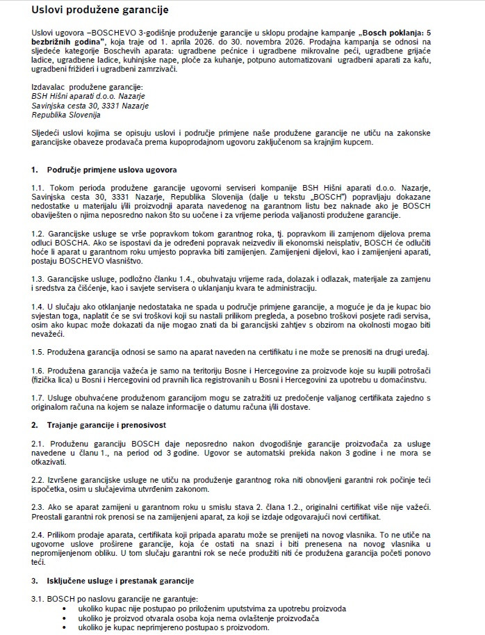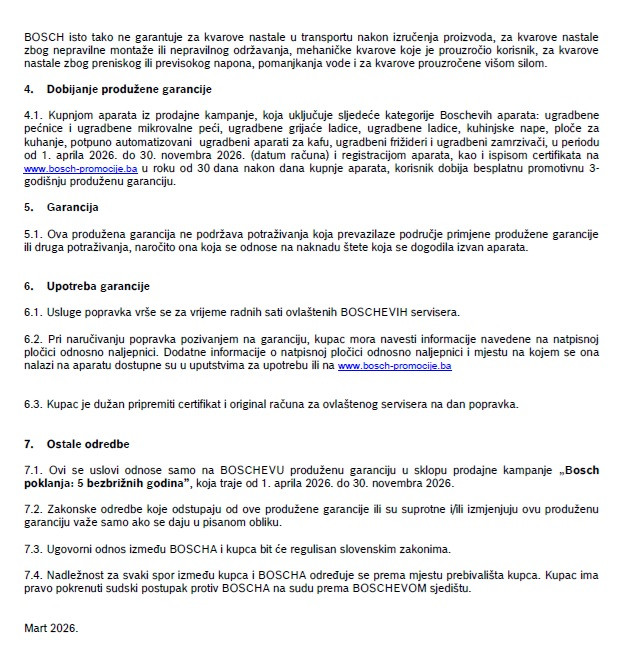 Kupovinom aparata iz prodajne kampanje, potrebno je registrovati aparat na: http://www.bosch-promocije.ba/, u roku od 30 dana od datuma kupovine.