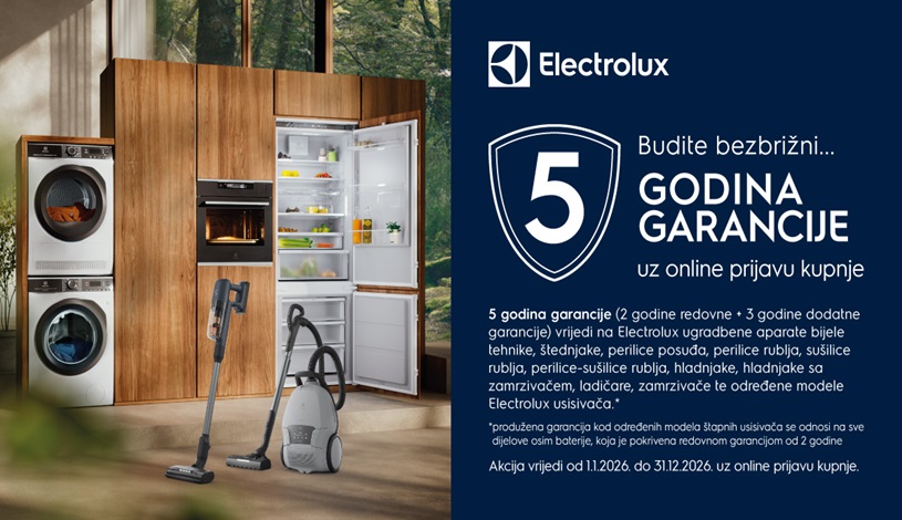 Od 01.01.2026. godine, pa sve do 31.12.2026. godine osigurana je garancija od 5 godina na određenu grupu proizvoda Electrolux.