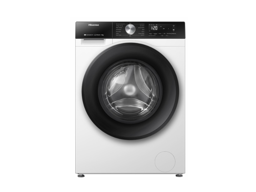 Hisense WF3S8043BW3 je moderna 8 kg veš mašina sa inverter motorom, 1400 obrtaja i naprednim pametnim funkcijama (Wi-Fi, para, auto programi)